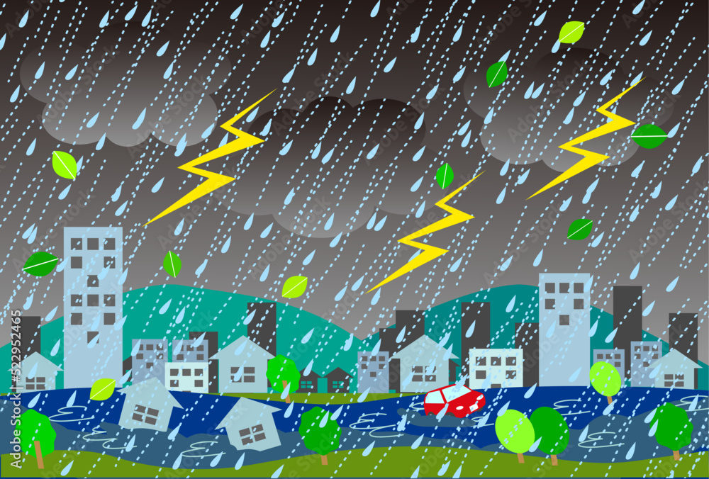 線状降水帯でのバケツをひっくり返したようなゲリラ豪雨。